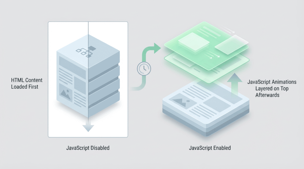 Website animations can harm SEO when they rely on JavaScript to render core content instead of enhancing it. If search engines cannot reliably see your text, your pages may struggle to rank or be indexed properly.