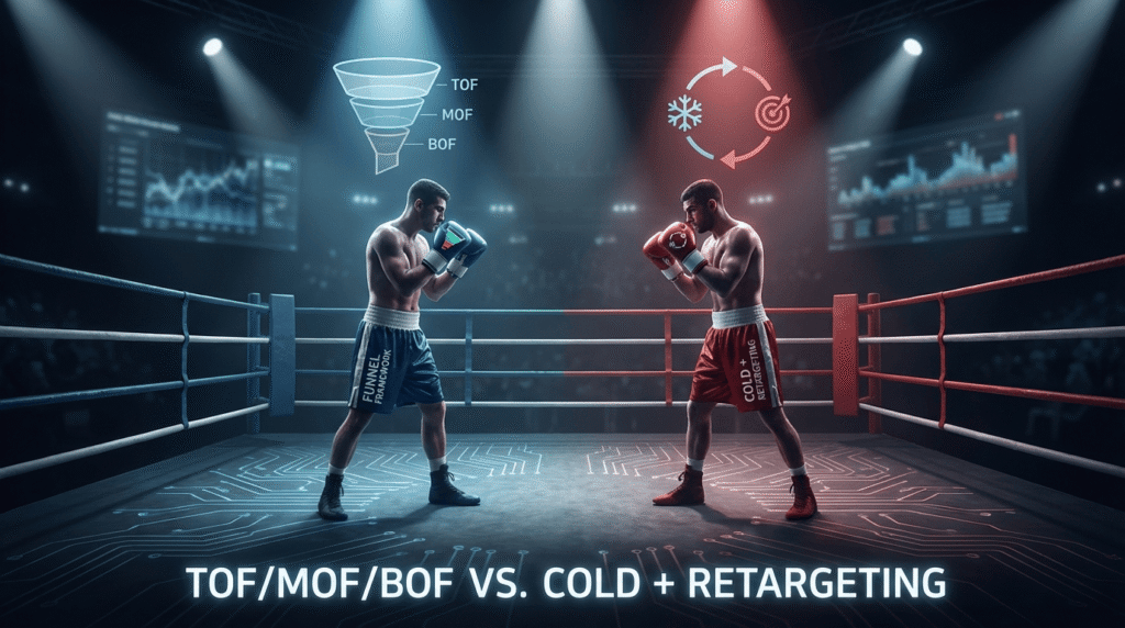 TOF/MOF/BOF vs Cold + Retargeting Explained Properly There are two dominant schools of thought in Meta ads today. One follows a traditional top-of-funnel, middle-of-funnel and bottom-of-funnel structure. The other ignores funnels almost entirely and runs only cold and retargeting campaigns. This article explains how Meta actually works in 2026, the strengths and weaknesses of both […]